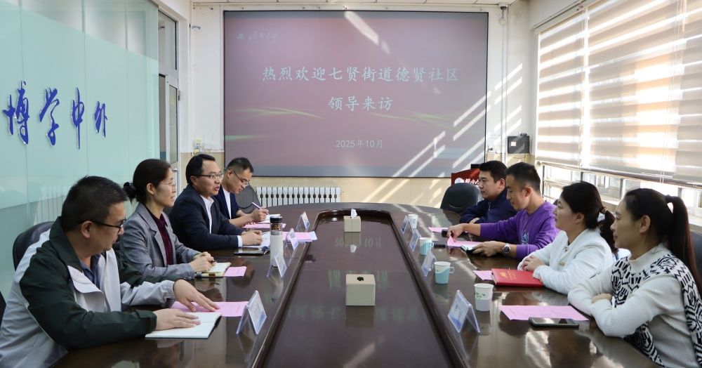 为深化校地合作机制,拓宽学生社会实践平台,增强学院服务社会的能力与责任感,10月14日,外国语学院与七贤街道德贤社区在第一教学楼开展了共建交流活动。德贤社区主任祁玉鑫及社区工作人员刘淼、毛兆智和李玟,外国语学院党委书记郭英、院长宋庆伟、副院长王勇和团委书记吴杨洋参加了此次活动。