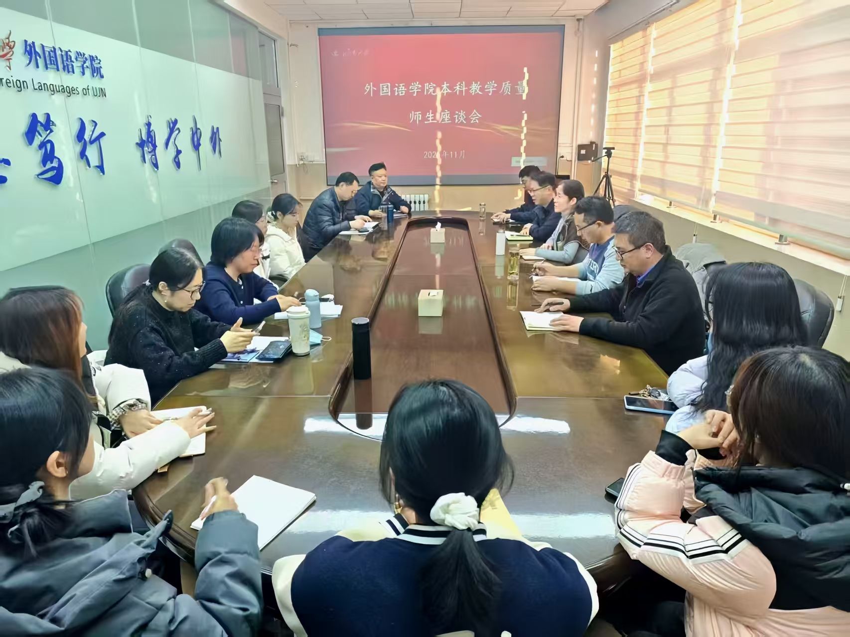 为深入践行“以学生为本”的育人理念,切实提升教学质量与人才培养水平,助力学子全面发展,11月25日下午,外国语学院组织召开本科教学质量座谈会,学院领导班子成员、各系部主任、辅导员及学生代表参加会议。