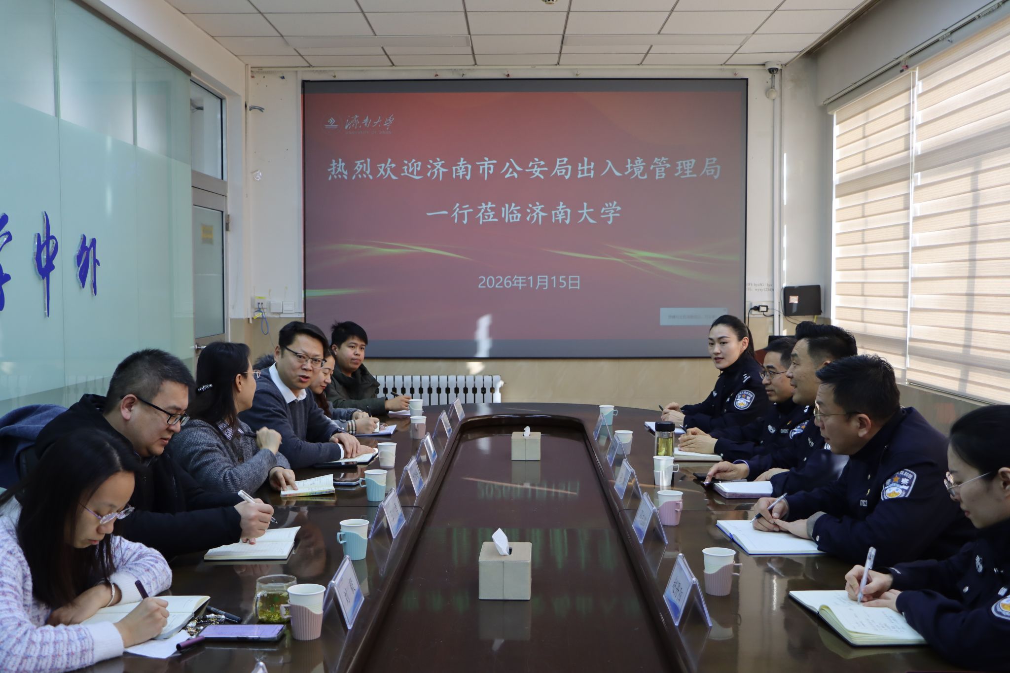 1月15日下午,济南市公安局出入境管理局副局长张鹏一行来到济南大学,就多语种志愿服务体系建设、外籍师生管理与服务优化、留学生综合管理等内容进行调研座谈,外国语学院和国际教育交流学院相关负责同志参加。
