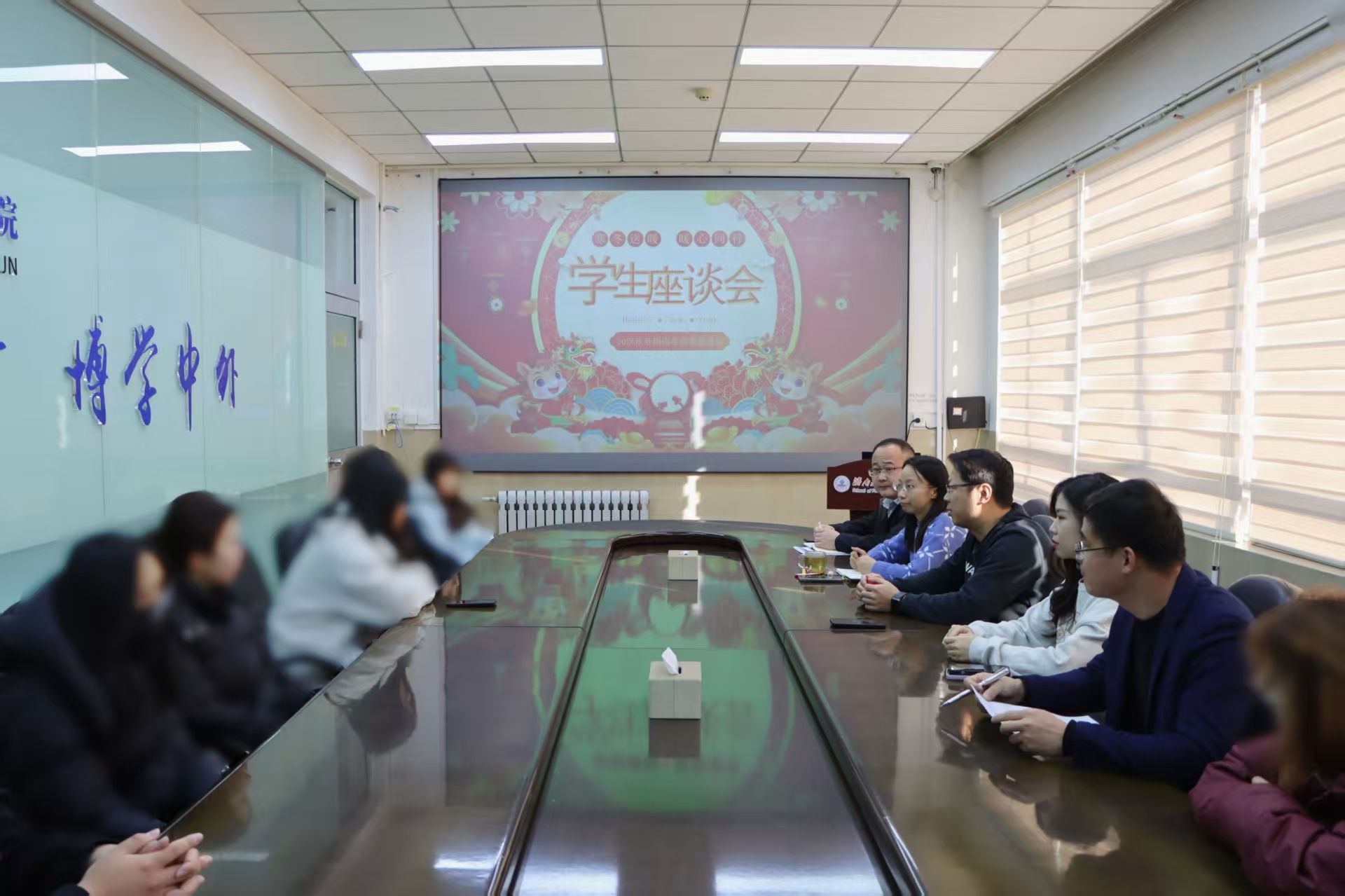 为深入了解学生学习生活状况,传递学院对学子的关心关爱和美好祝福,1月22日下 午,外国语学院在学院会议室召开2026年寒假家访学生座谈会。学院党委副书记、副院长李春海和学院全体辅导员与各级学生代表齐聚一堂、面对面交流。