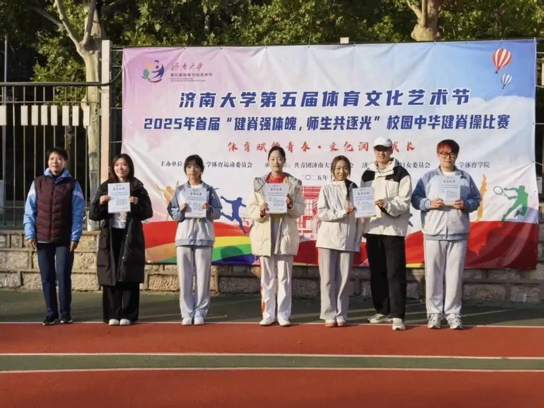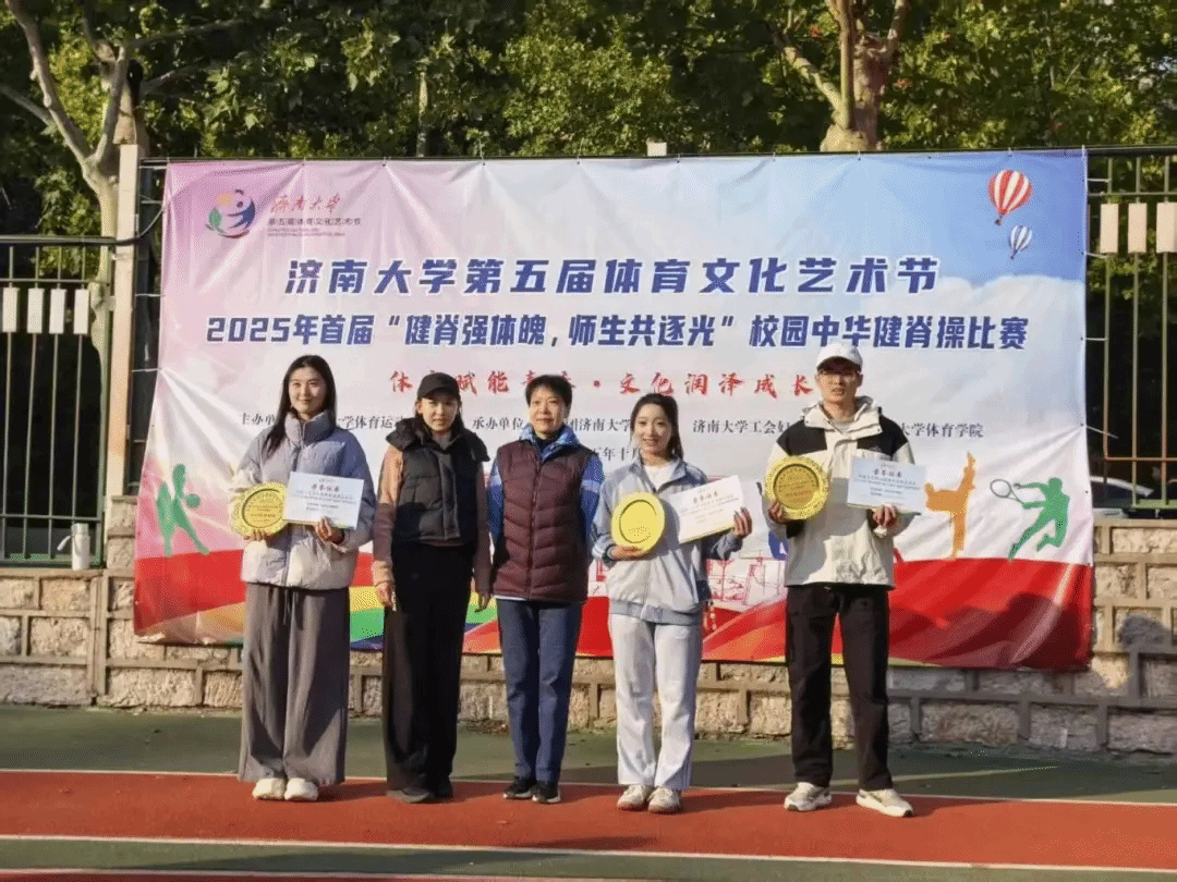 为弘扬中华优秀传统文化,丰富校园体育文化生活,10月21日,济南大学首届“健脊强体魄,师生共逐光”校园中华健脊操大赛落幕。外国语学院师生踊跃参与,组建两支参赛队伍参赛,经过激烈的角逐,学院获得“脊韵风采”金奖,两支参赛队均获得团体赛一等奖,张桐桐和花雪丽同学在个人项目中荣获“规范动作达人”称号。