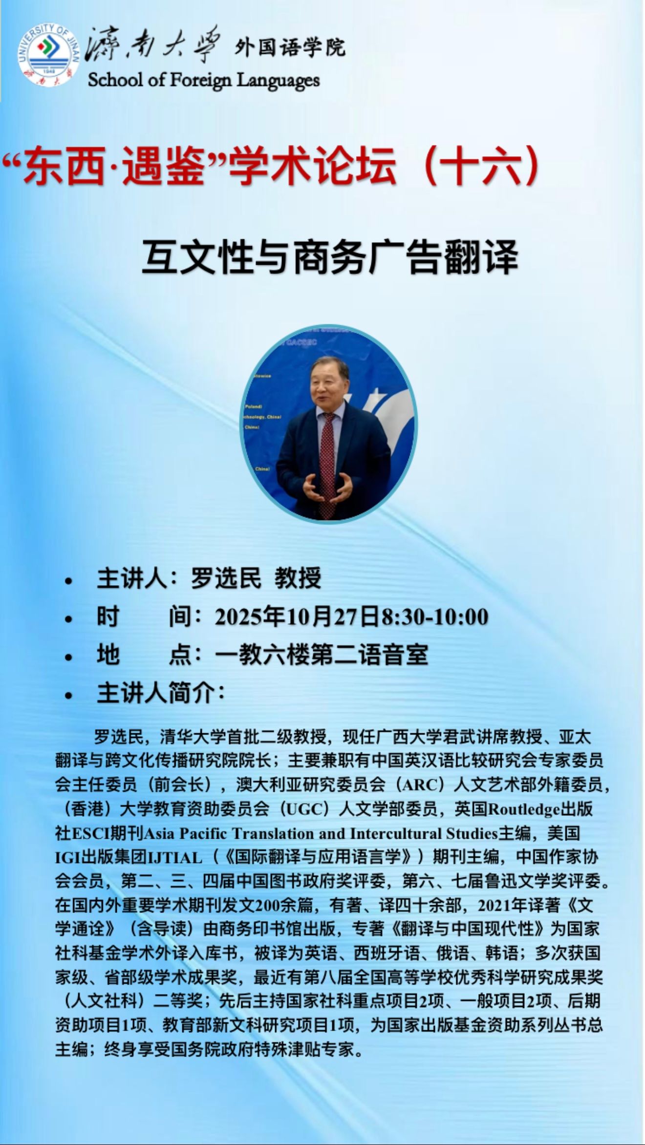 地址:山东省济南市南辛庄西路336号济南大学外国语学院 邮编:250022
