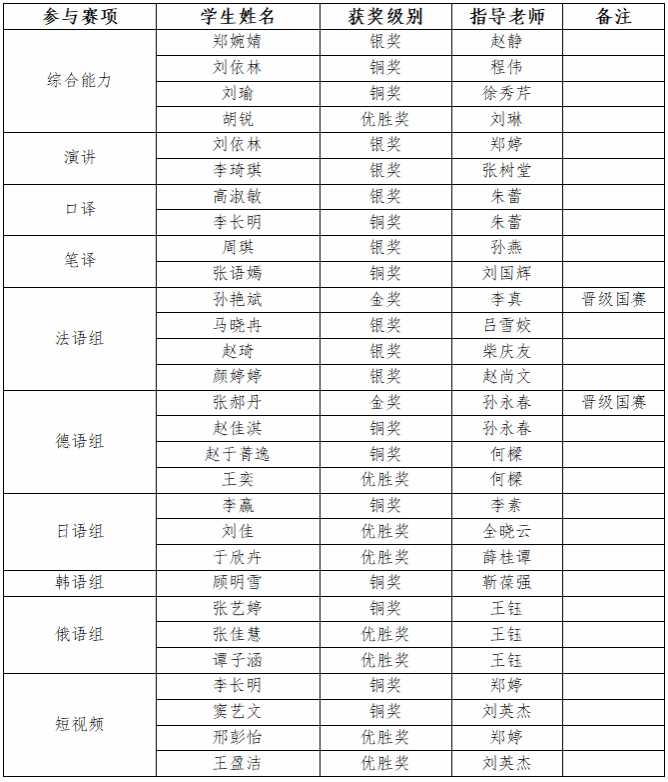 本次优异成绩充分彰显了学校在外语教育改革创新与思政育人方面取得的扎实成效。在校团委的大力支持下,外国语学院高度重视,坚持“以赛促教、以赛促学、以赛促创”的工作理念,精心组织校内选拔,选派经验丰富的指导教师团队对参赛学生进行指导。优异成绩的取得,激励着外国语学院未来继续以学科竞赛为重要载体,不断提升育人质量与核心竞争力,为学校高质量发展和高素质外语专业人才培养注入新动能。