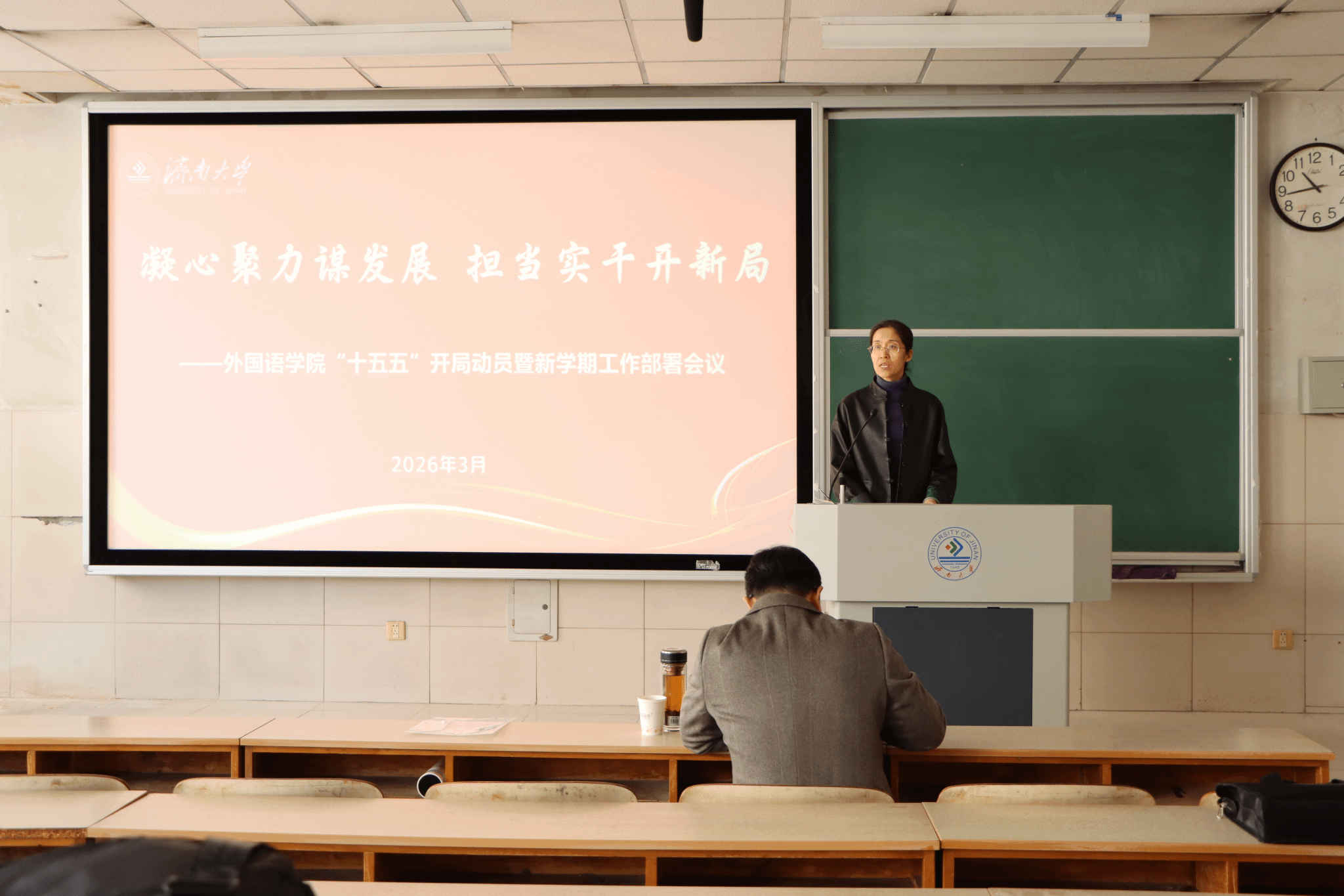 3月7日,外国语学院在第二教学楼203教室召开“十五五”开局动员暨新学期工作部署会,学院全体教职工参会。学校特聘教授、博士生导师,国家哲学社会科学基金评审委员刘建军应邀出席。