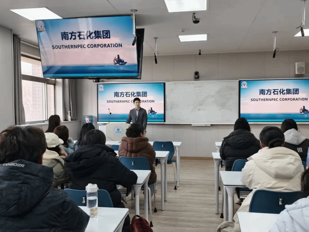 座谈会后,南方石化集团面向学生举办专场招聘会。招聘经理通过宣讲介绍了集团的核心项目、海外工作环境、薪酬福利及岗位发展路径,并针对学生关心的薪资待遇、休假制度、安全保障等问题逐一解答。